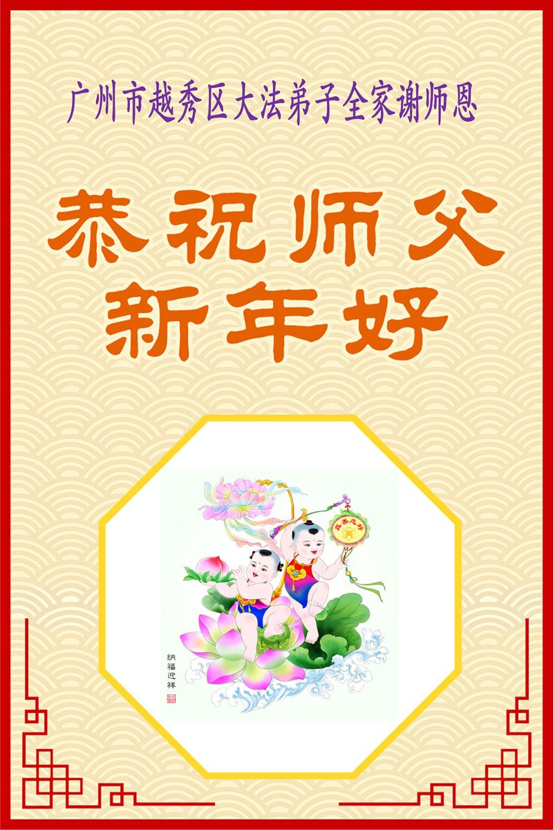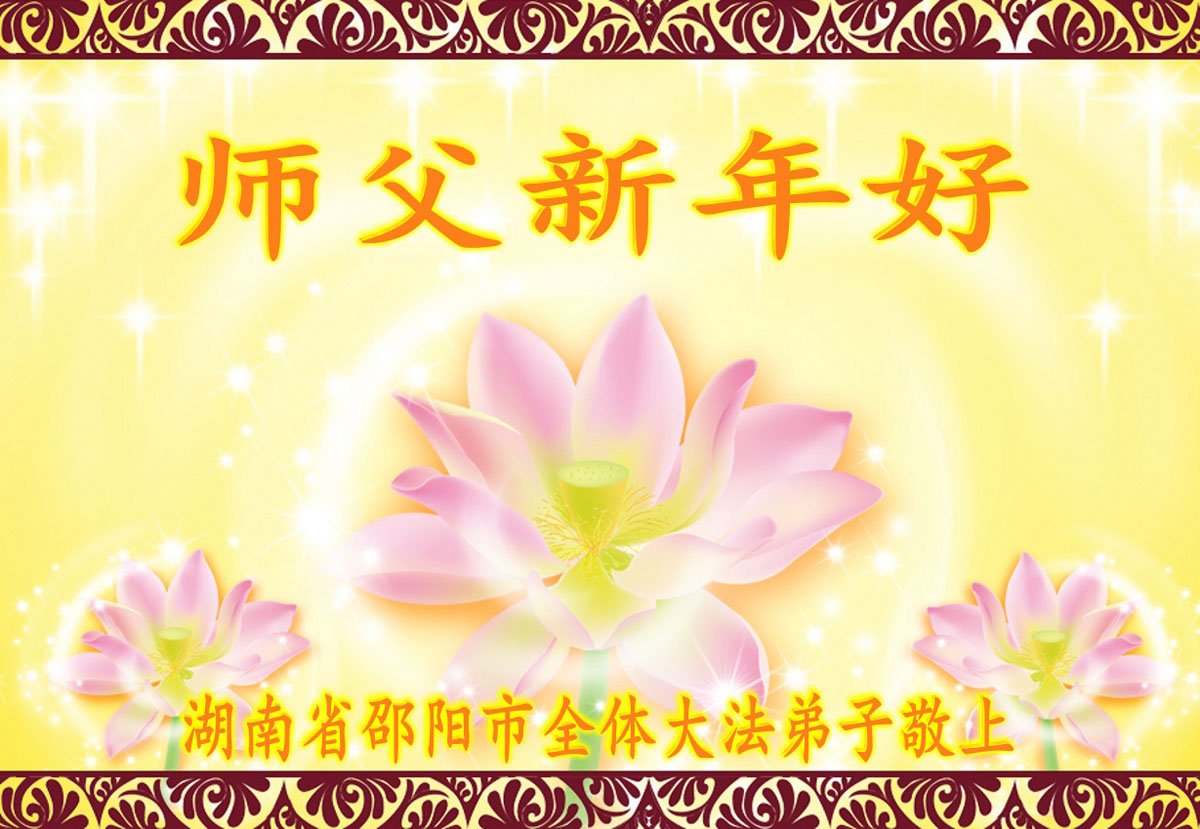 師父新年好!謝謝師尊把大法傳給我們,給了弟子修煉的機緣。弟子多年來在大法中受益良多,千言萬語無法表達弟子的感恩之心!在新的一年裏,弟子一定珍惜修煉機緣,努力學好法,緊跟正法進程,讓師父少一份操勞,多一份欣慰。