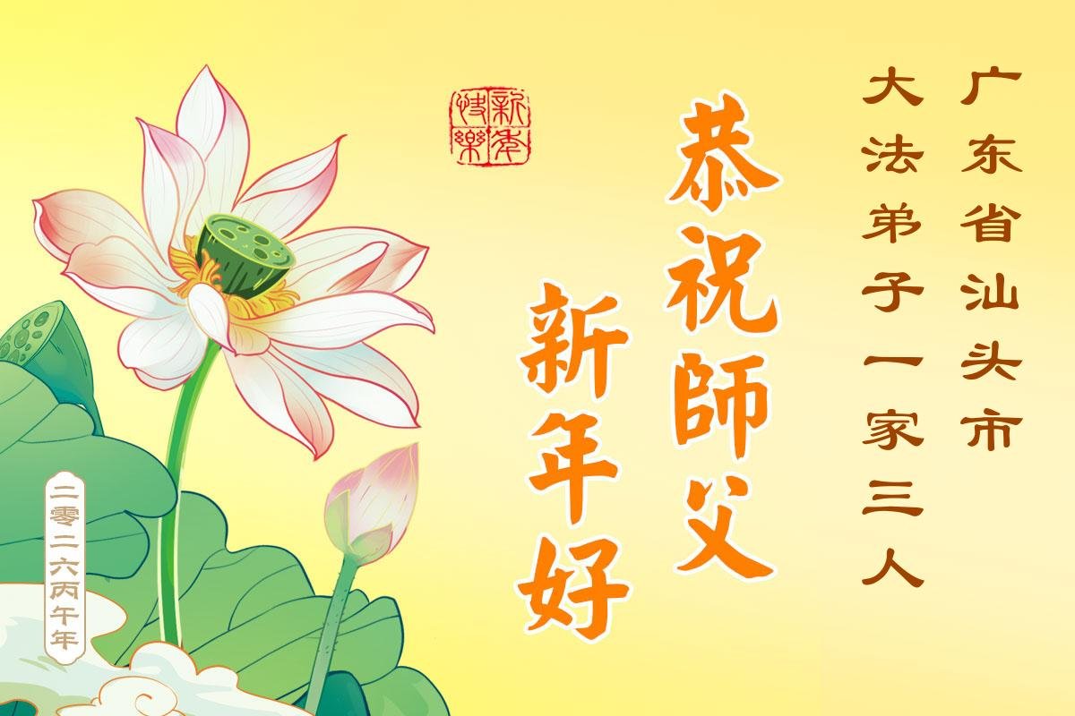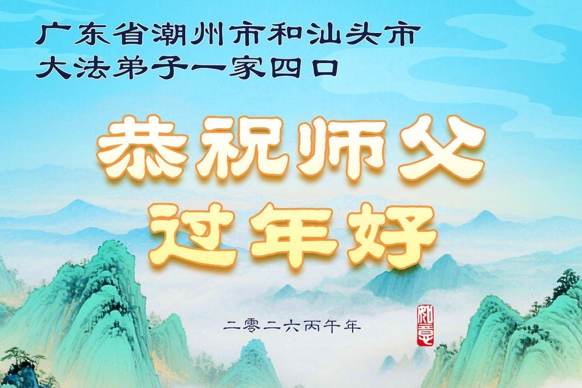辭舊迎新,送走乙巳年,迎來丙午新年,值此過年之際粵東地區大法弟子和多個學法小組向您慈悲偉大的師父拜年!恭祝慈悲偉大的師尊過年好!我們時刻謹記自己是師尊的弟子,多學法,學好法,紮實修煉,正念正行,做好三件事。