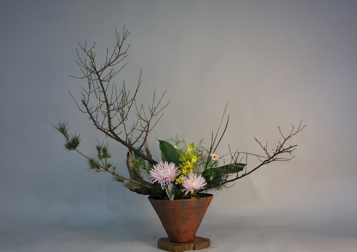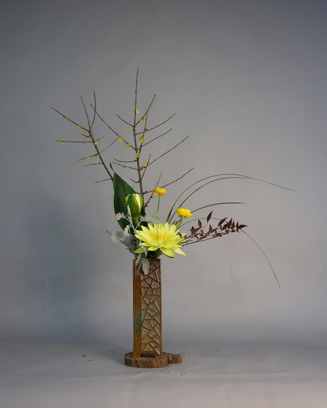 近一、兩年開始自學中華花藝,近期完成的兩副作品,並賦詩一首,感恩師尊。