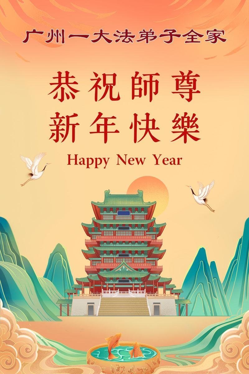 尊敬的師父新年好!在新的一年裏,弟子們要按照大法的標準,嚴格要求自己,努力精進實修,多向內找,去除各種不好的觀念、執著、人心,破除魔難,走出困境,按照師父的要求做,做好自己該做的,不辜負大法弟子的稱號!