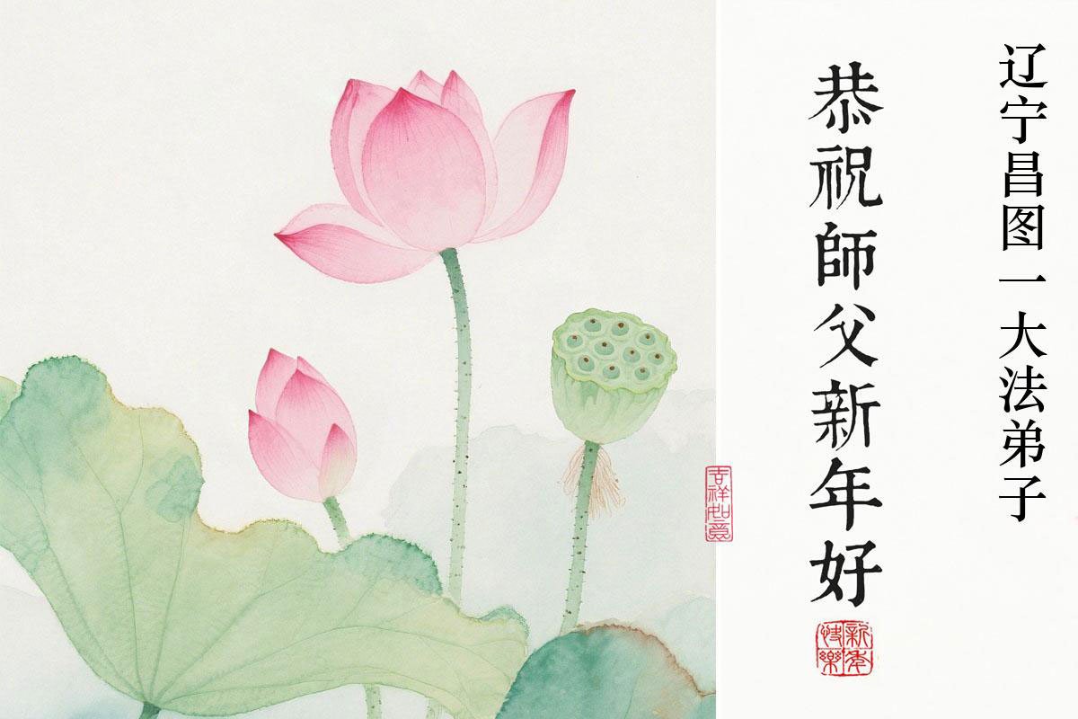 恭祝師尊新年快樂!弟子要在新的一年裏盡最大的努力助師救度眾生。