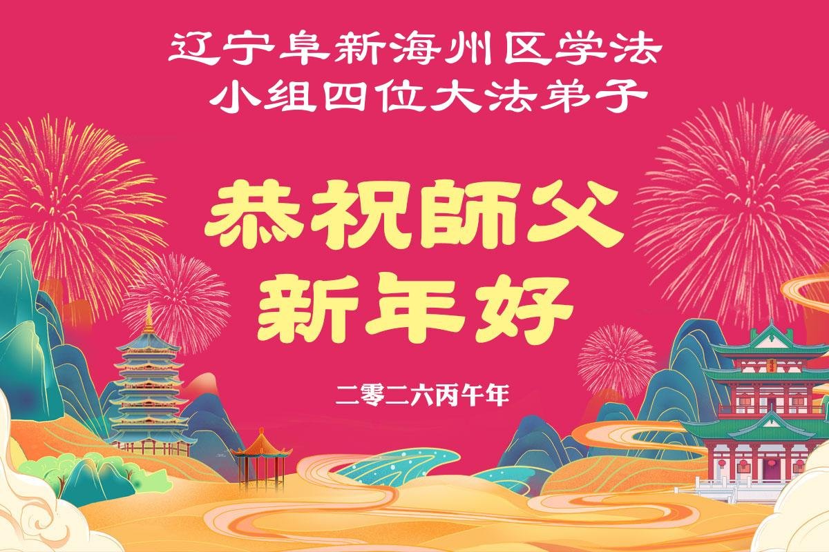 遼寧省營口市鱍魚圈區我們這個學法小組弟子們,恭祝師尊新年快樂!