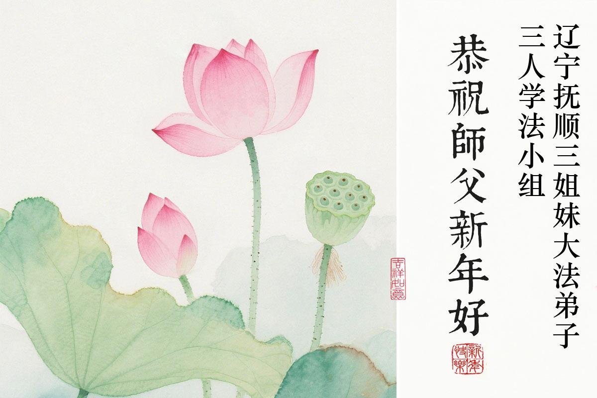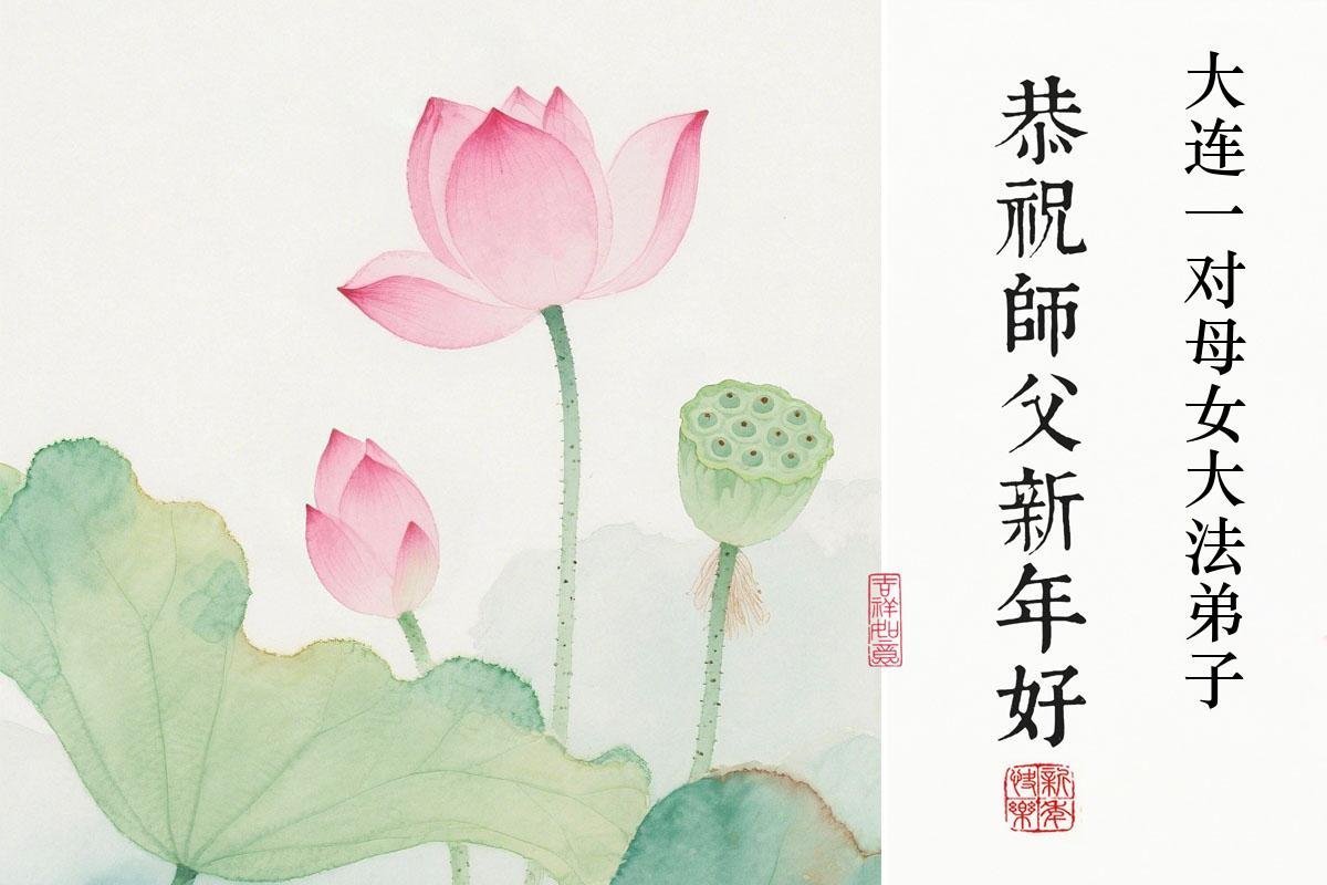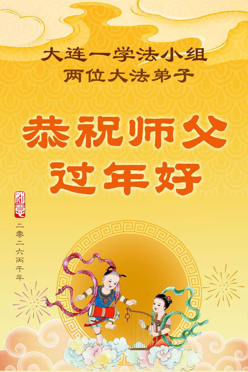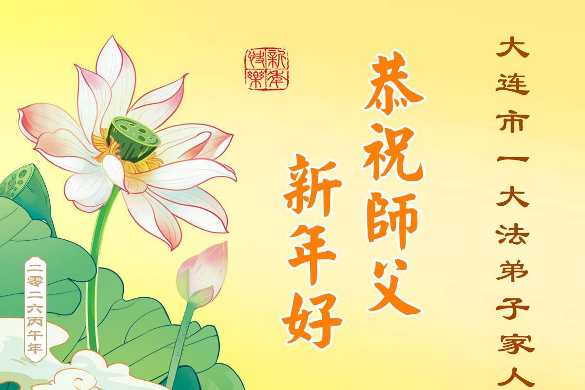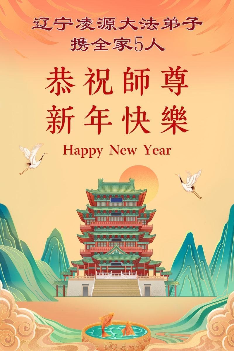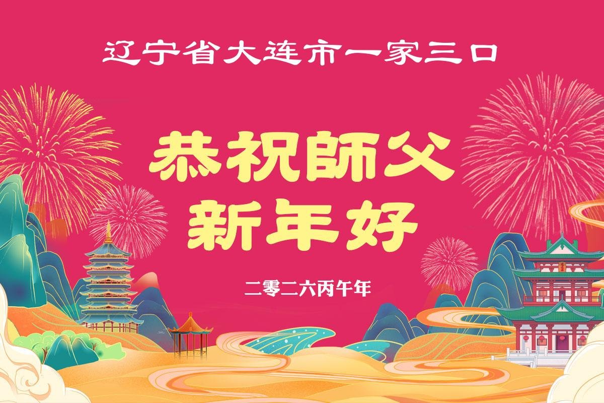 旅順口區一大法弟子全家恭祝師尊新年快樂!