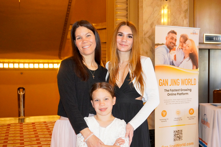 ![]() 圖10:二零二六年三月二十一日下午,美國舞蹈教師琳達‧道斯(Linda Dawes)(左)和兩個女兒在密蘇裏州聖路易斯觀賞了神韻演出。(大紀元) |