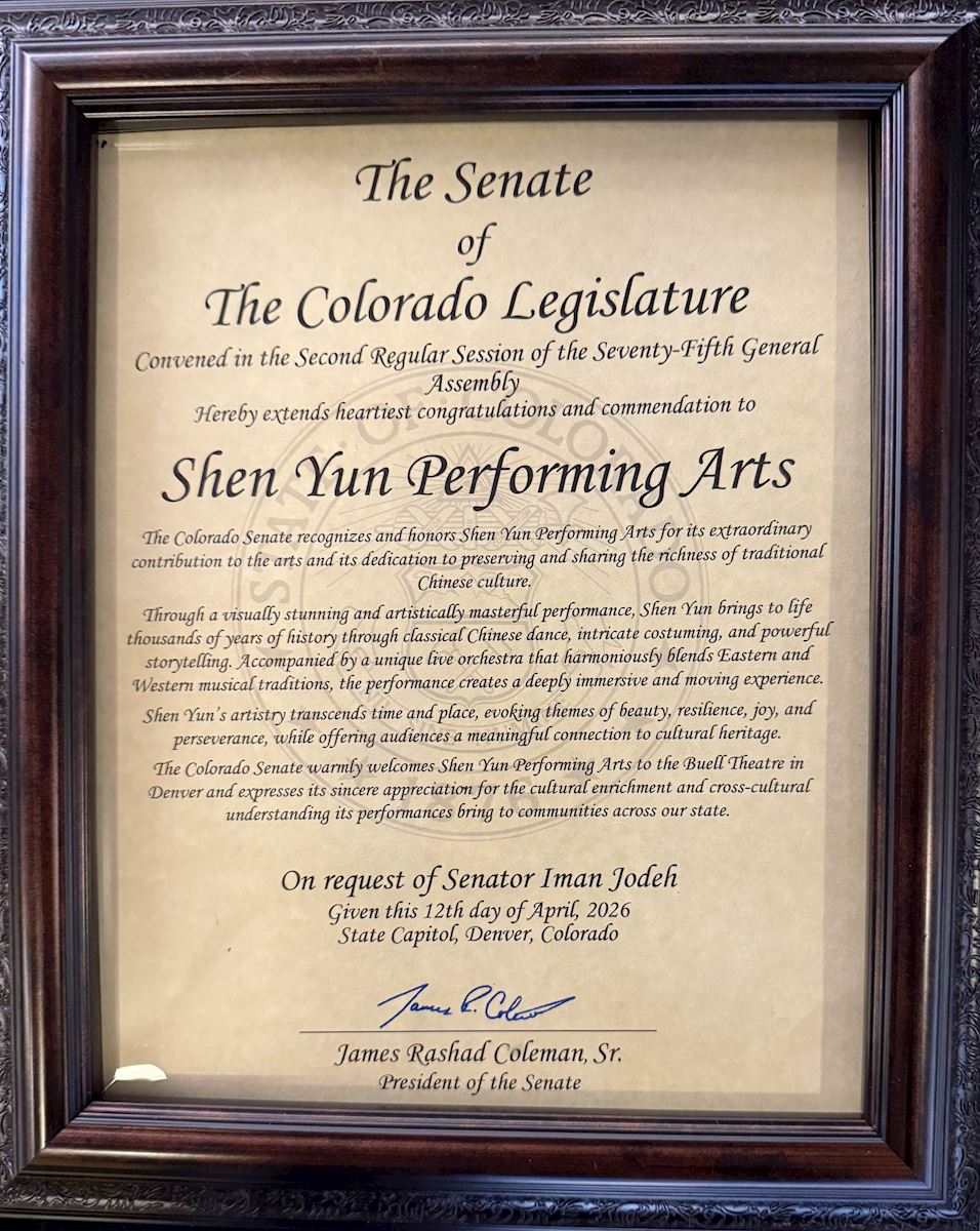 州參議員喬德說:「我們希望表達對神韻的致敬,她通過舞蹈與故事展現中國文化,同時也為科羅拉多帶來文化多樣性,豐富了我們的社會。」她還表示,在神韻成立二十週年之際頒發這項褒獎,別具意義。