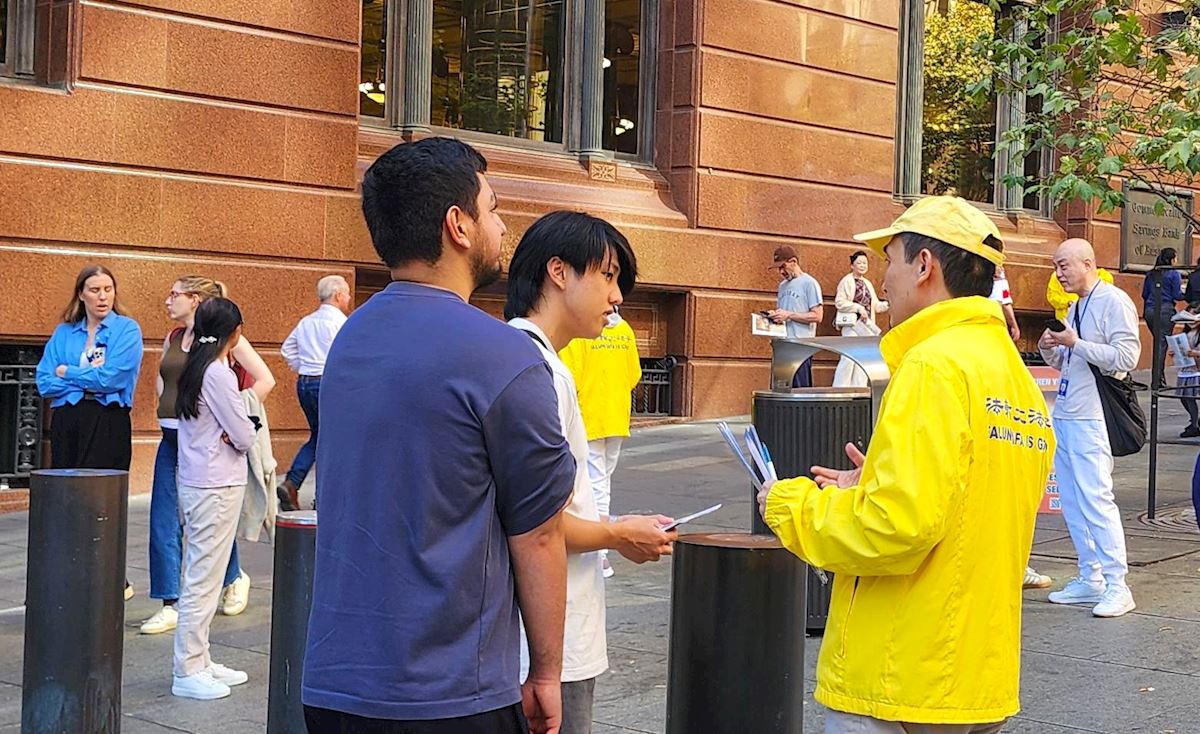 傑瑪・羅伯遜(Jemma Robertson)說:「我在布里斯班和悉尼看到過人們身穿黃色服裝,舉行這樣的活動來表達他們的信仰。我知道這肯定和人權有關。很顯然中國政府的人權狀況和澳大利亞不同。我認為,每個人都應該有權信奉自己的信仰或宗教。」
