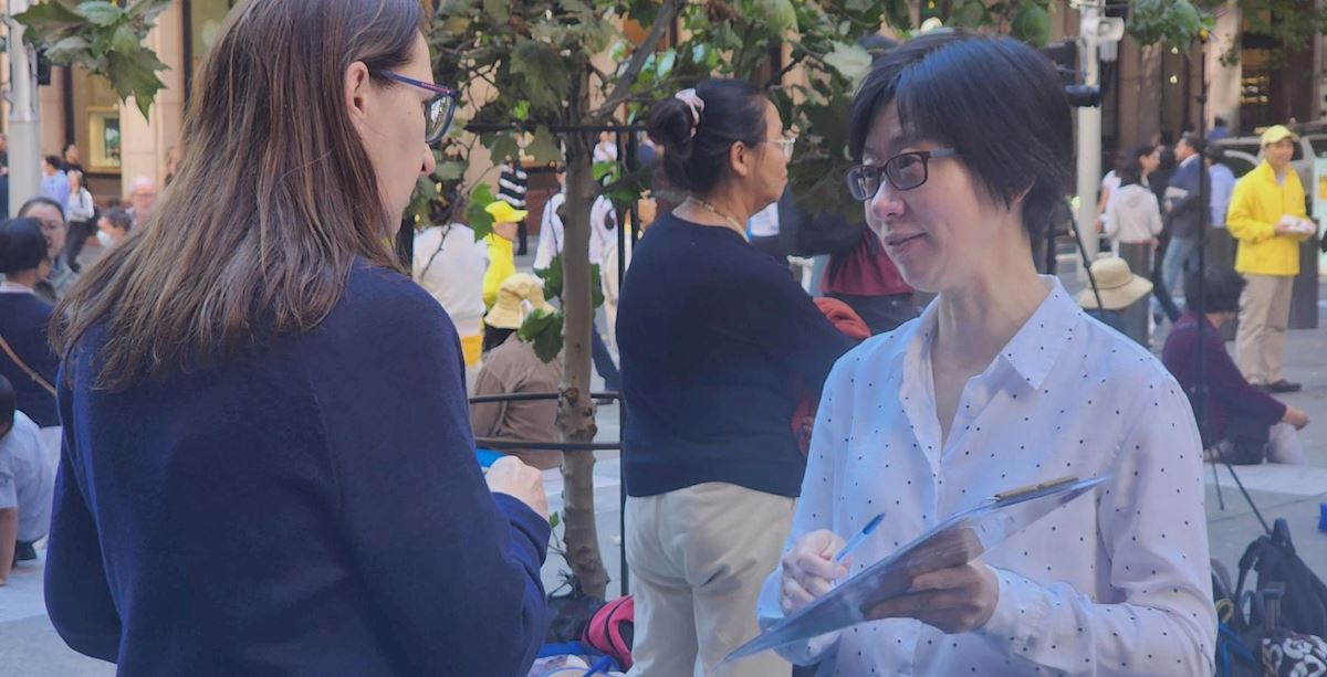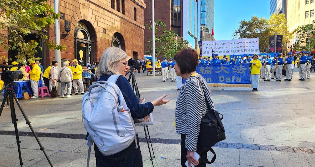 她表示法輪功學員舉辦這樣的活動「很棒」,「這確實是一種很明顯的傳遞真相的方式,因為很多澳洲人可能對法輪功還不太了解,如果他們知道在中國人們會因為自己的信仰而受到懲罰,我想大多數澳洲人都會感到震驚。自由的匱乏,缺乏思考與表達信仰的自由,這對我們來說,實在太可怕了。」