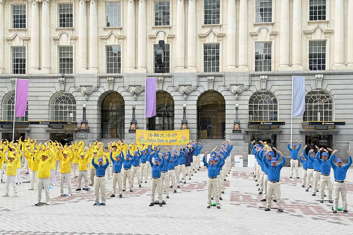 在這座繁忙的海濱商業區,寧靜祥和的煉功場面不僅讓人們感受到法輪大法真、善、忍的美好,也促使更多人了解「四﹒二五」這一和平理性的歷史事件及其意義。
