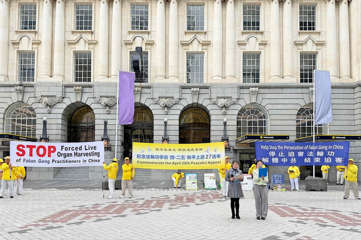 在集會上,三位法輪功學員分享了他們的親身經歷,從不同角度回顧了一九九九年四月二十五日的上訪事件,勾勒出一幅平和、理性的歷史畫面。申女士講述,當時得知天津學員被抓後,她與同修前往北京府右街信訪辦上訪,現場來自各地的學員自發聚集,秩序井然,有人讀書,有人靜靜站立,沒有喧嘩、沒有衝突。即便過程中一度出現緊張氣氛,學員們依然保持冷靜與克制,最終在當晚相關問題得到回應後,大家有序離開,這種從容與理性令她難以忘懷。