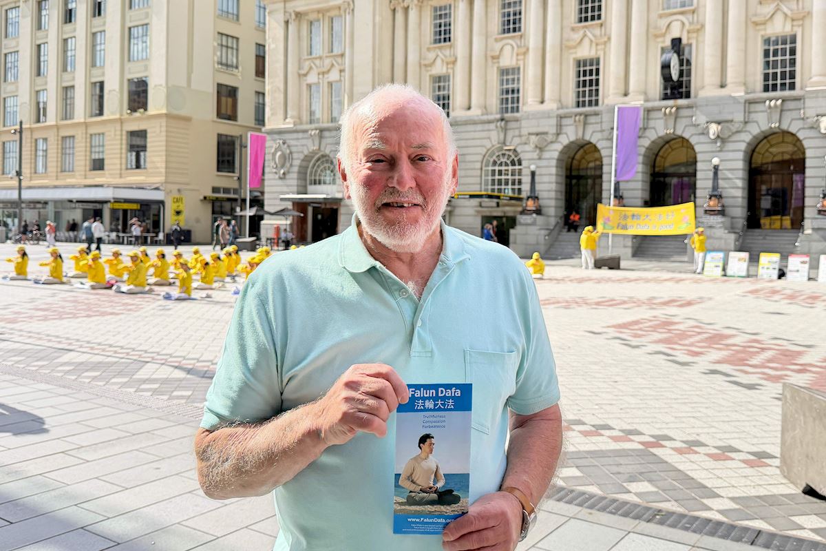 退休船匠馬爾科姆﹒麥克雷恩(Malcolm Macrae)在現場觀看法輪功學員的煉功與和平展示後,非常感動。了解到法輪功學員在「四﹒二五」和平上訪所體現的精神,馬爾科姆表示認同與支持:「當遭到不公正對待時,他們(法輪功學員)必須這樣做,而且要充滿希望。過程中會有很多挫折,也許看起來沒有明顯進展,但關鍵是要堅持,因為他們是在講真話,是正義的。」