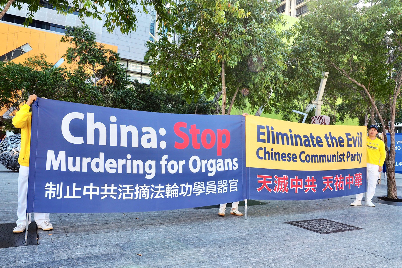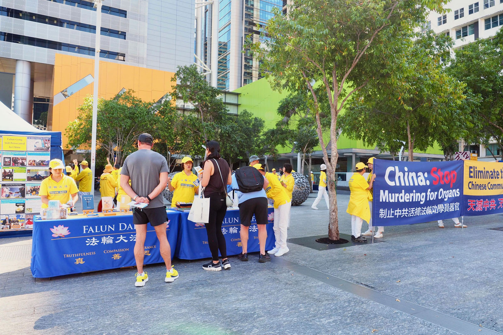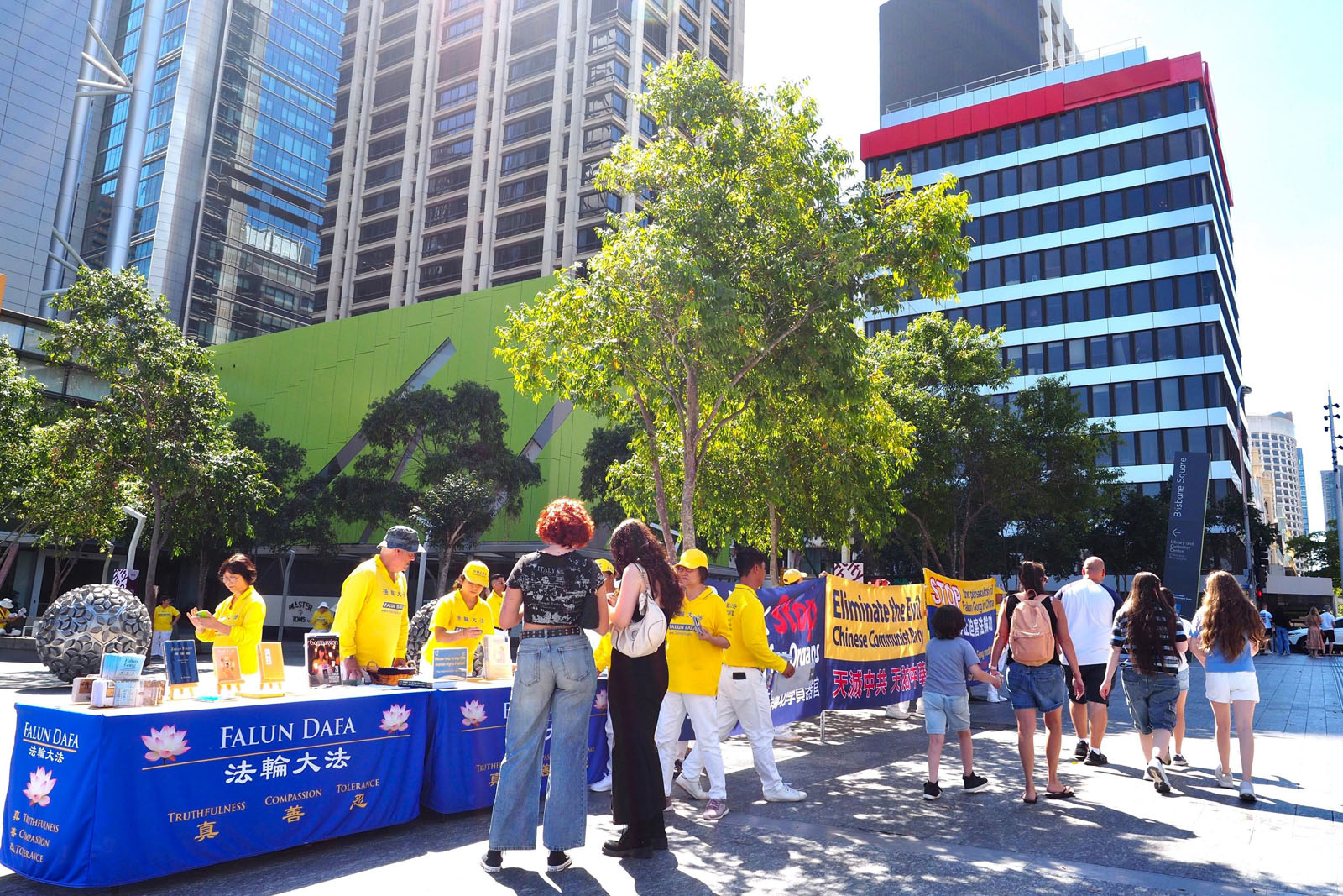 圖3~4:布里斯班廣場法輪功學員展示的真相橫幅。