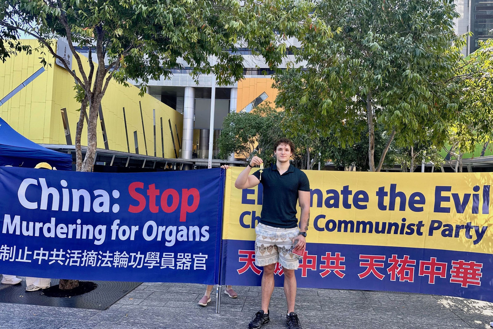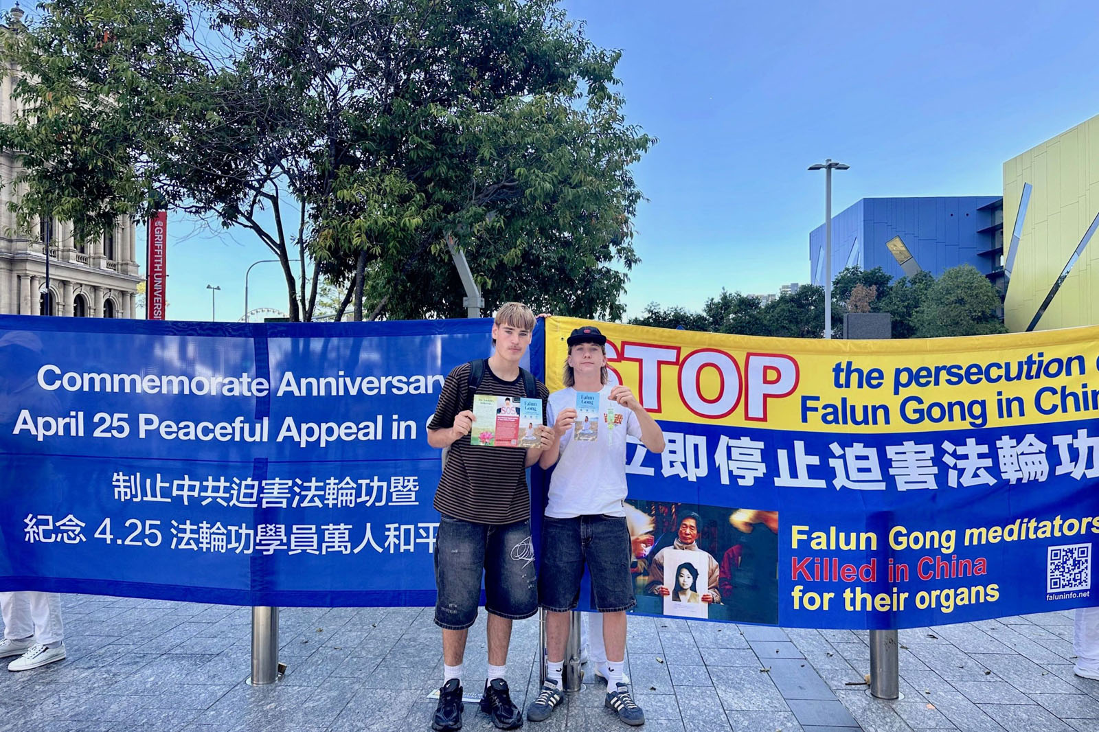 艾登﹒弗羅斯特(Aiden Frost)和瑞利﹒埃文斯 (Ryley Evanns)是來自澳洲洛根(Logan)地區的中學生。他們在活動現場了解到法輪功受迫害的事實後,簽名支持法輪功反迫害。他們表示很震驚:「在澳洲這樣的自由社會,很難想像中共對法輪功的迫害會發生。但是在中國這樣一個共產主義專制體制下,它發生了。這是一個巨大的悲劇。」