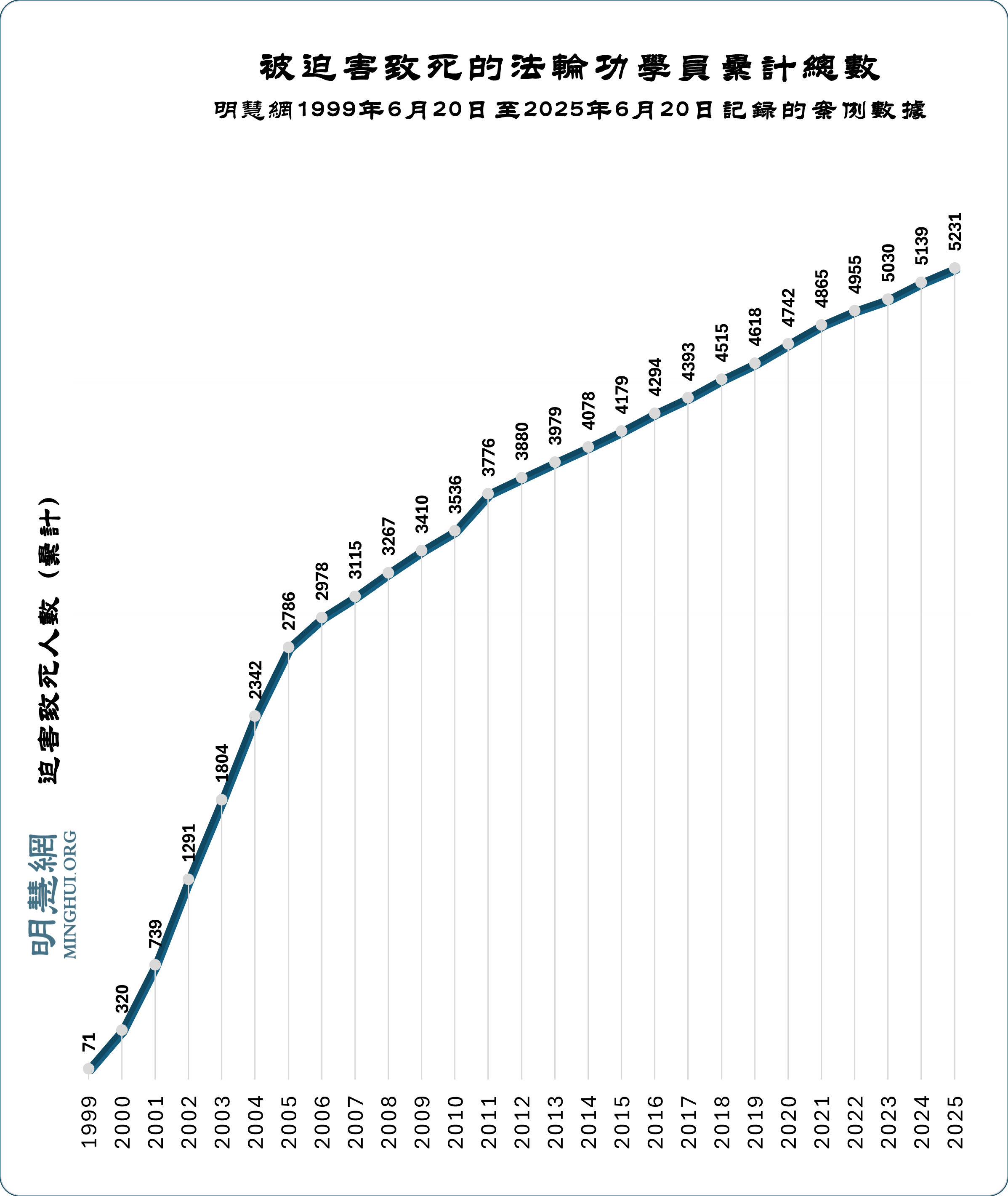 一、26年被迫害致死的法輪功學員累計總數(無法查證姓名身源者未統計在內):