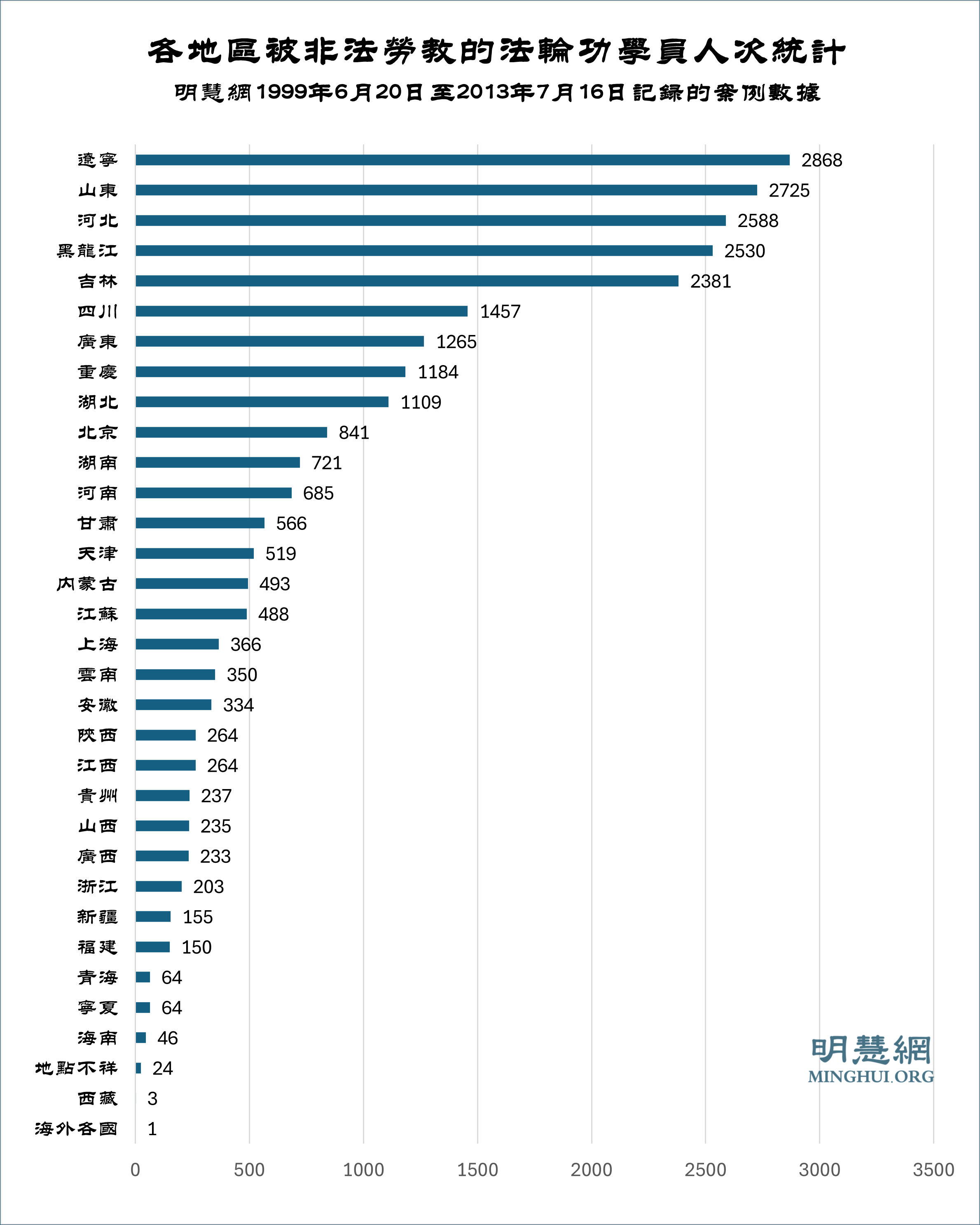 八、26年各地區被非法勞教的法輪功學員人次統計(未報導出來的案例沒有計入在內):