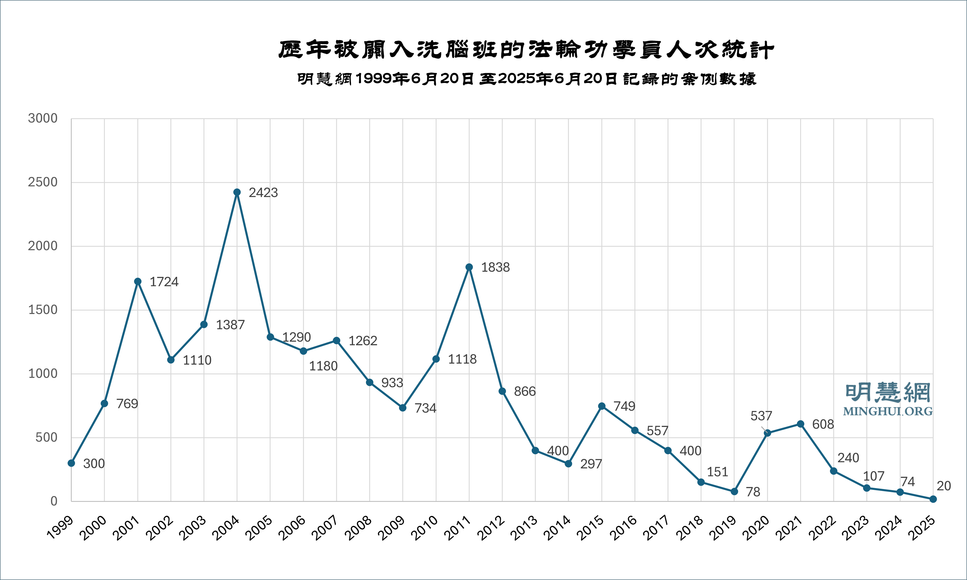 九、歷年被關入洗腦班的法輪功學員人次統計(未報導出來的案例沒有計入在內):
